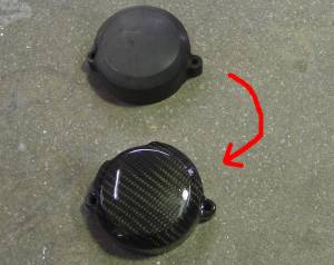 型を取り、カーボンボンネットを 作りました。 (ワンオフでも型が 必要になります) |